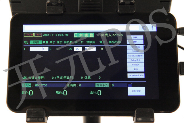 开元平板POS收银系统专卖店精致型 平板电脑显示器的俯仰角度可以调节 ![]() 开元平板POS收银系统超市型 ![]() 平板电脑显示器也可以在客显位固定,俯仰角度可以调节